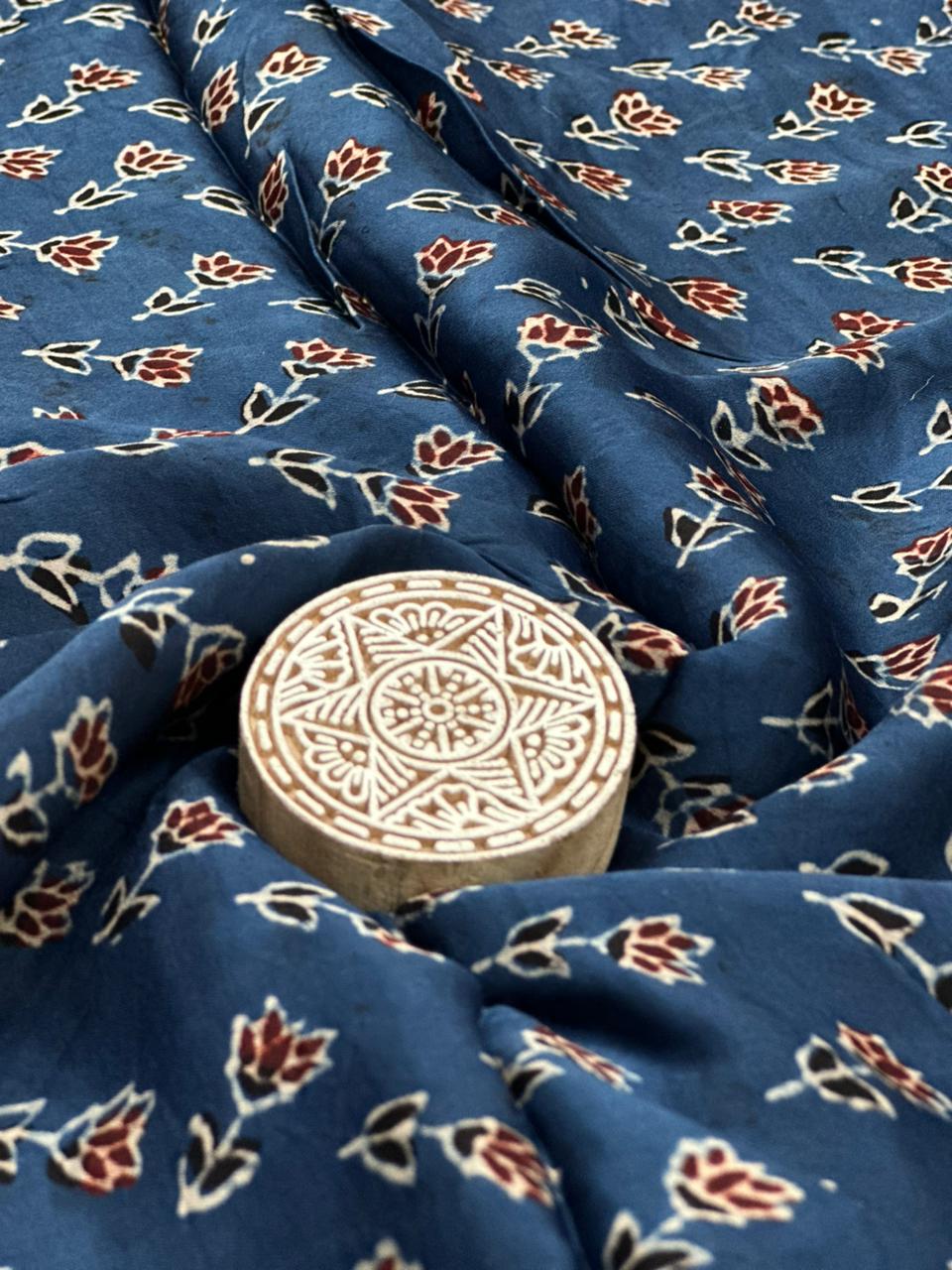 - Experience the richness of heritage with our Ajrakh Modal Running Fabrics, crafted using the age-old hand block printing technique of Ajrakh. Each piece reflects intricate patterns and deep, earthy tones created using traditional methods and skilled craftsmanship.