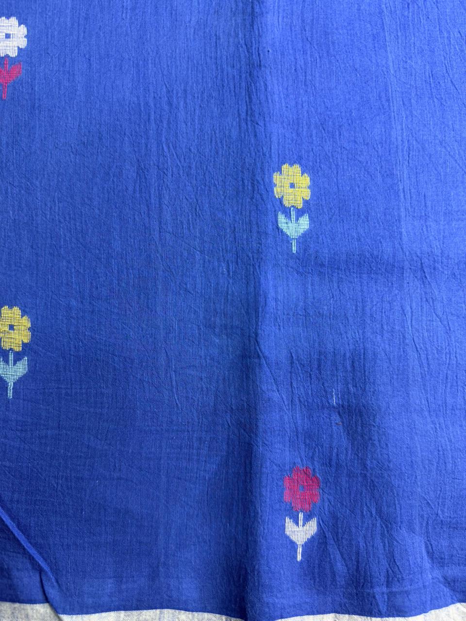• Woven with heritage and artistry, our Jamdani fabrics are a celebration of one of India’s most intricate handloom traditions. Crafted on fine cotton bases, each piece features delicate motifs that are meticulously handwoven into the fabric using the age old discontinuous weft technique.