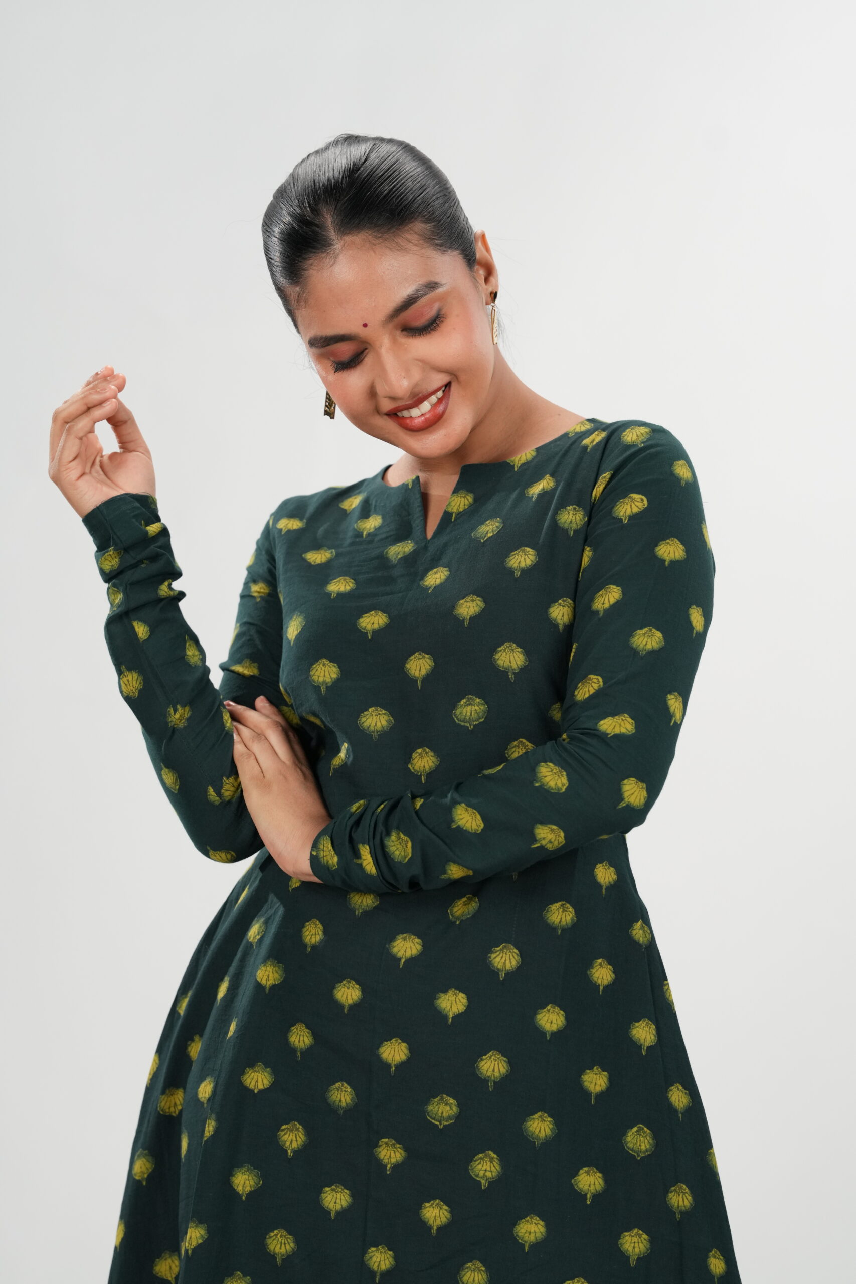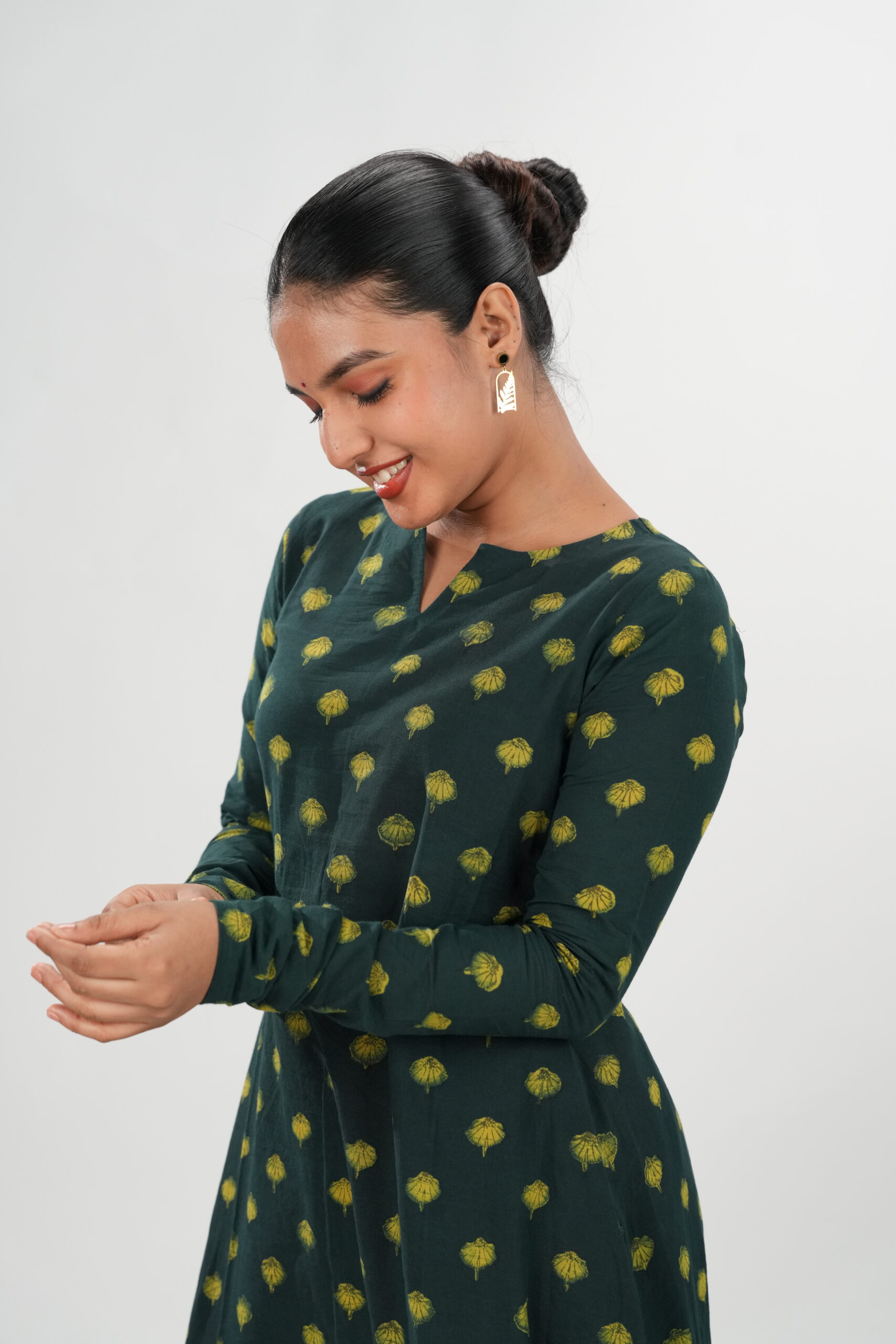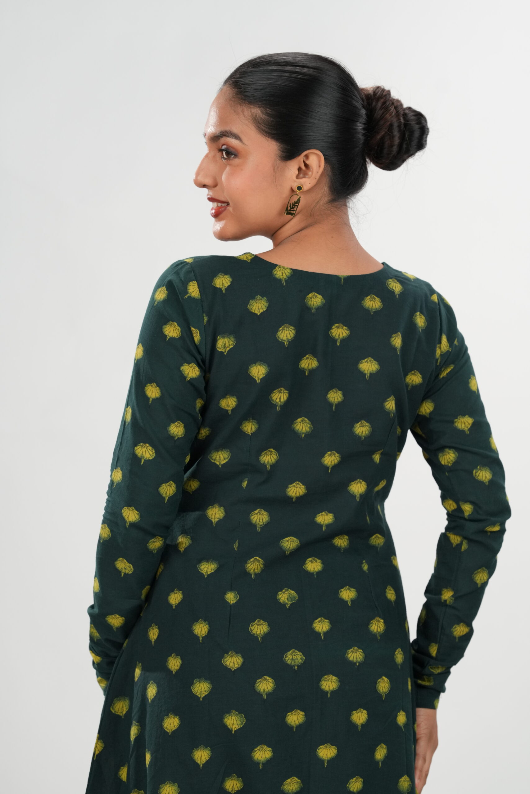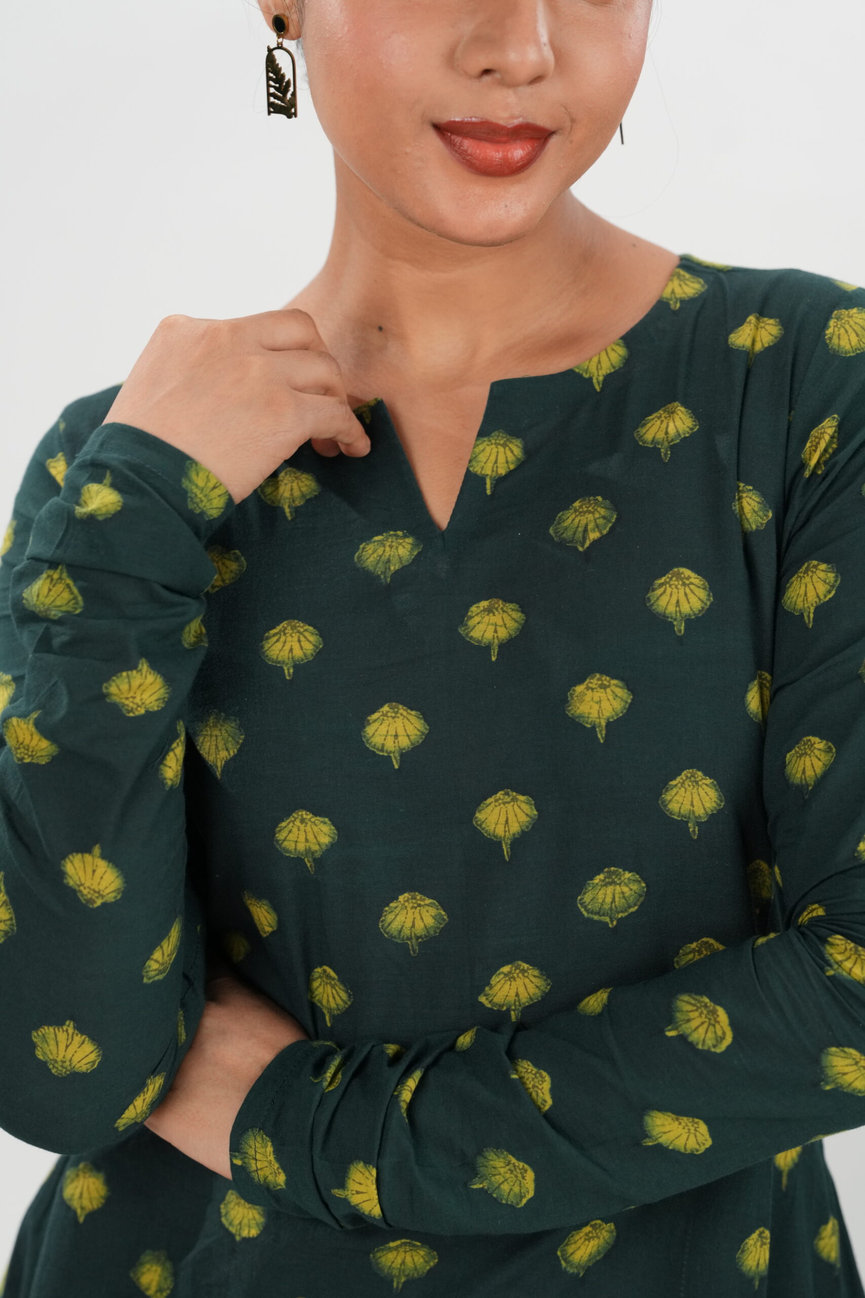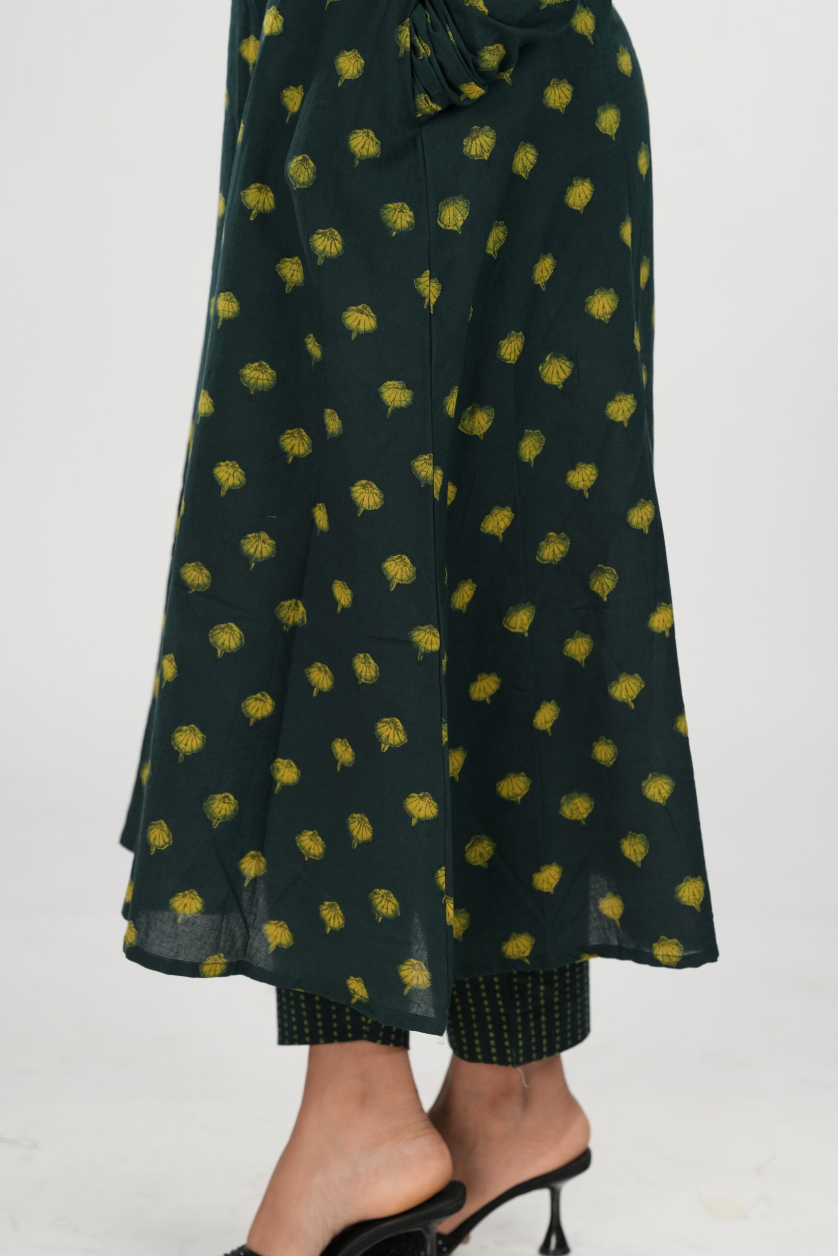 Step into understated elegance with our Rayana Akola Co-ord Set, crafted from authentic Akola handblock fabric. The deep olive-green base adorned with sunshine-yellow motifs brings together heritage and modern poise. Designed with a graceful flowy kurta and pant, this set offers comfort and sophistication in equal measure — perfect for workdays, get-togethers, or festive evenings.