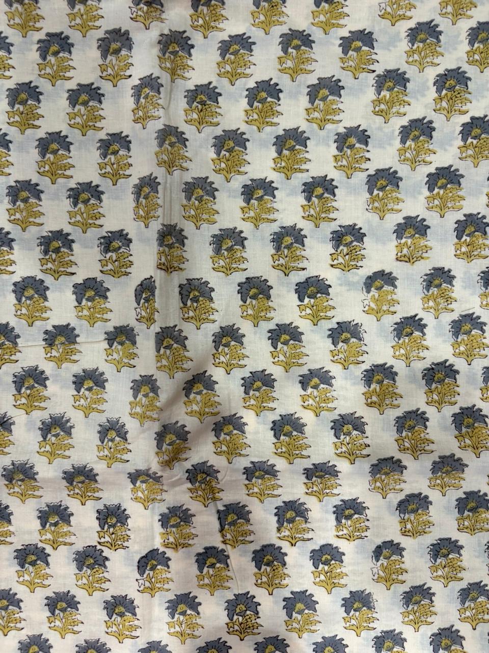Floral Sanganeri imprints on soft cotton brings with it the elusive elegance to add charm to your presence. Ideal for blouses, kurtas, kids dresses, cotton pants and anything in your stretch of imagination. The base fabric is thin and soft cotton. The design is parallel to the Length.