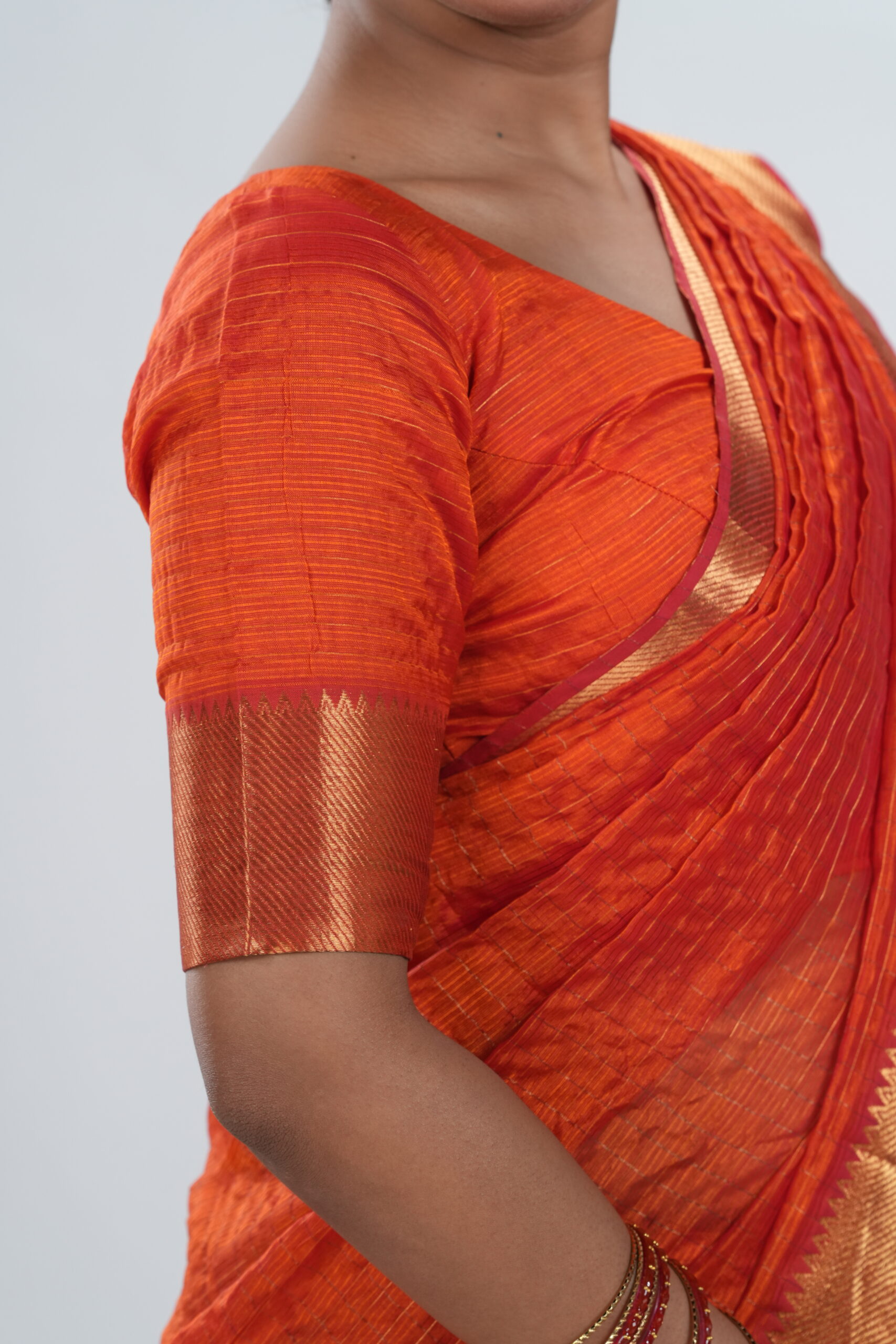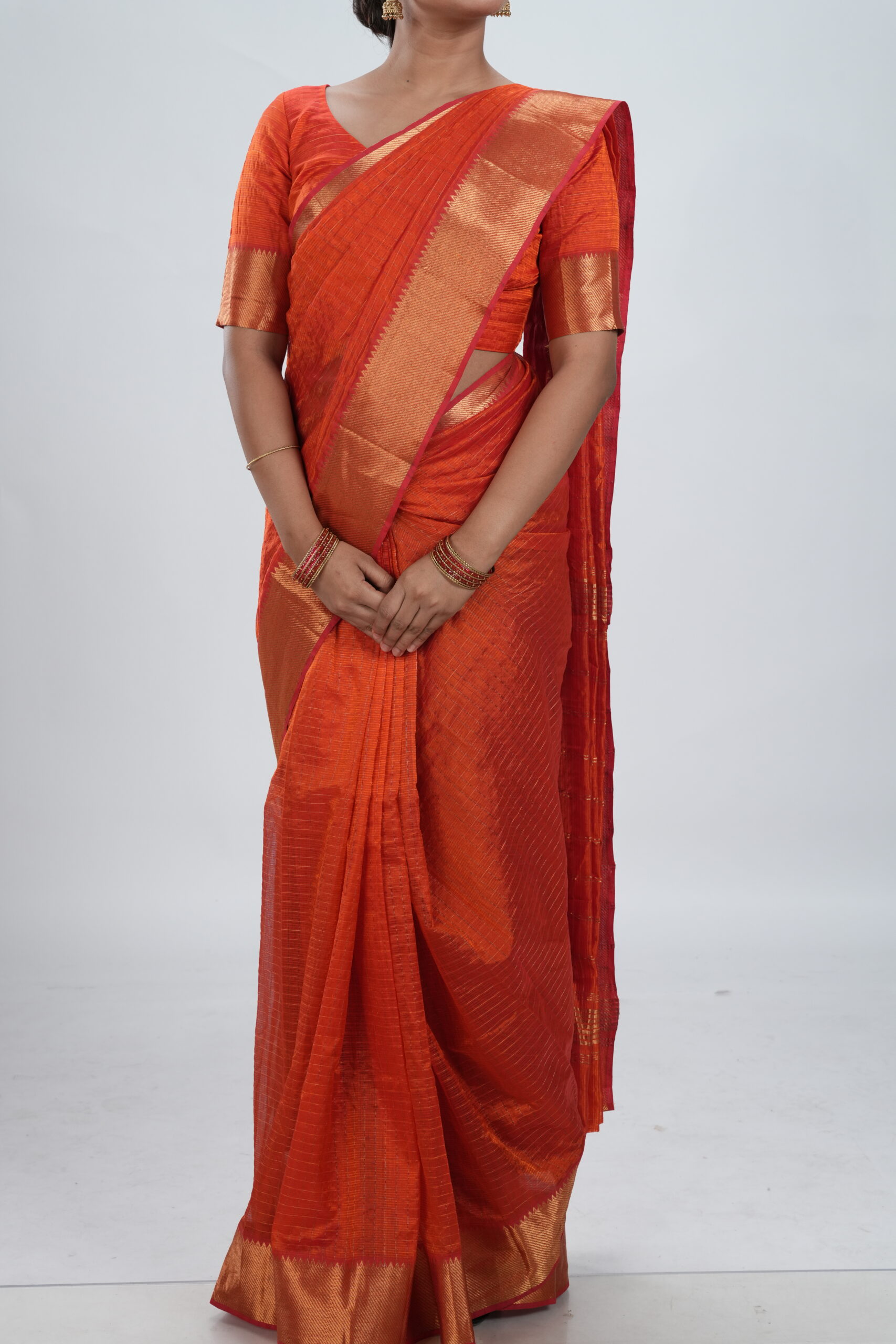 Vermillion Orange Mangalgiri Silk Saree