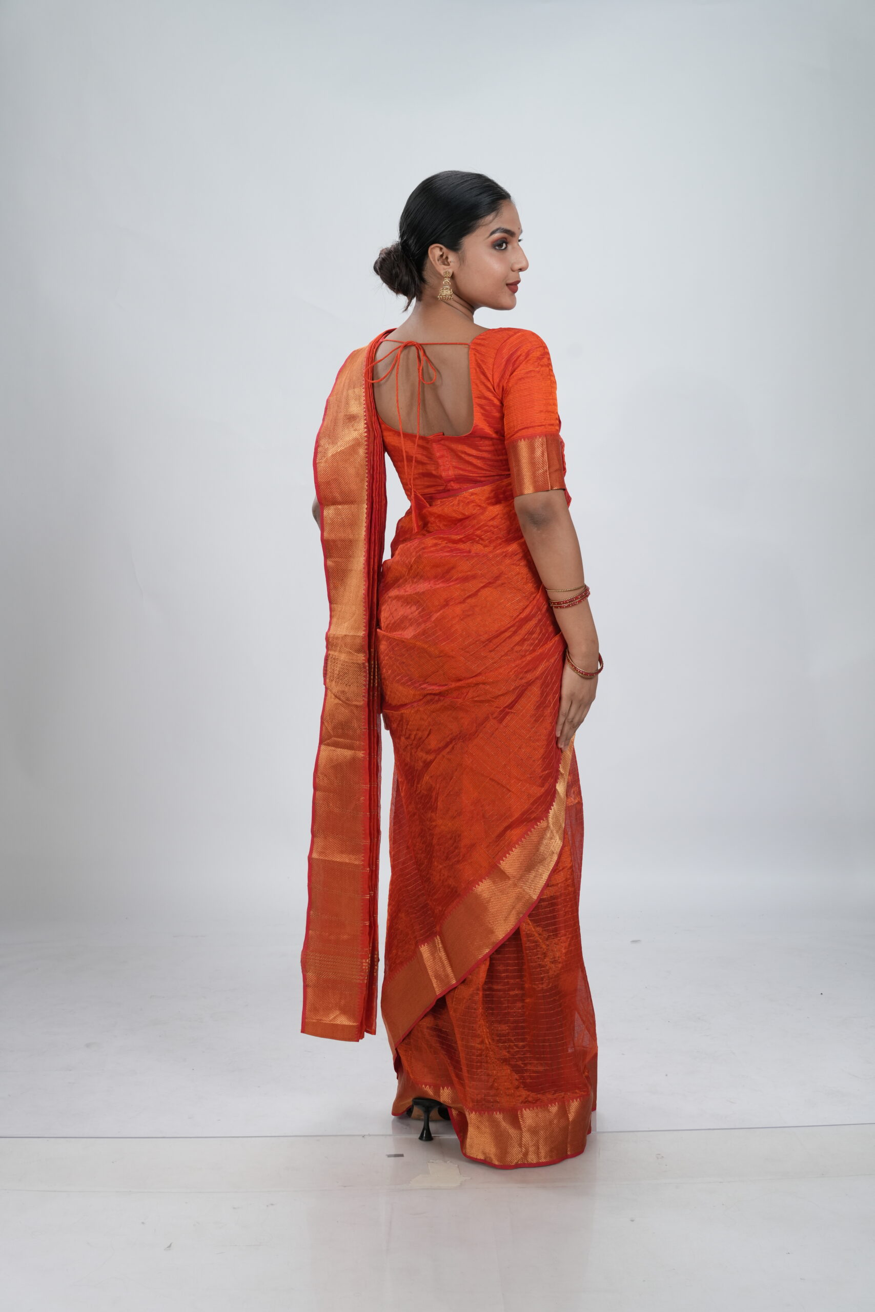 Be the first to review “Vermillion Orange Mangalgiri Silk Saree”